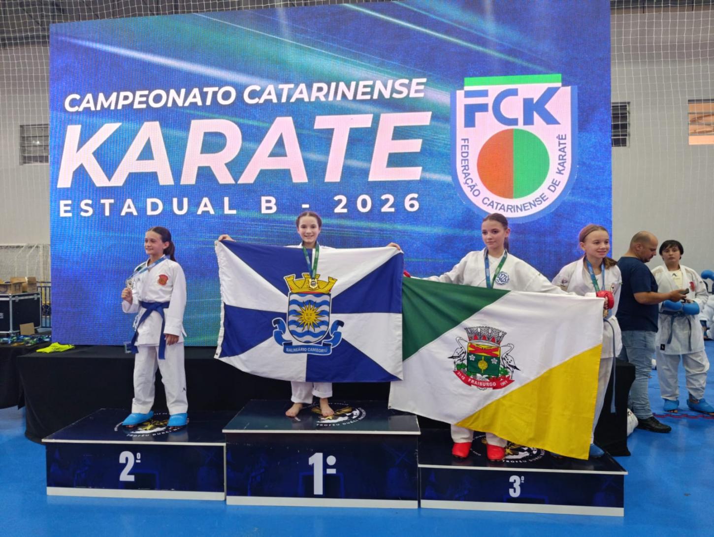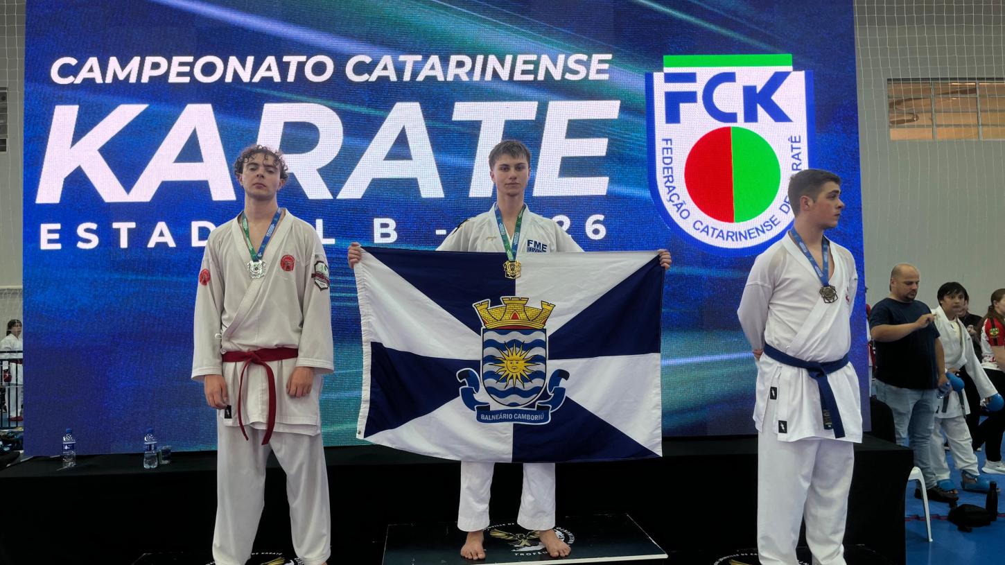 Balneário Camboriú teve destaque na 1ª etapa do Campeonato Estadual Divisão B 2026, realizada neste sábado (7), em Joinville. Os atletas da Fundação Municipal de Esportes (FME) conquistaram 14 medalhas, sendo cinco de ouro, nas modalidades kata e kumite. A competição marcou a abertura do calendário da Federação Catarinense de Karatê neste ano e reuniu 25 clubes e mais de 340 atletas.