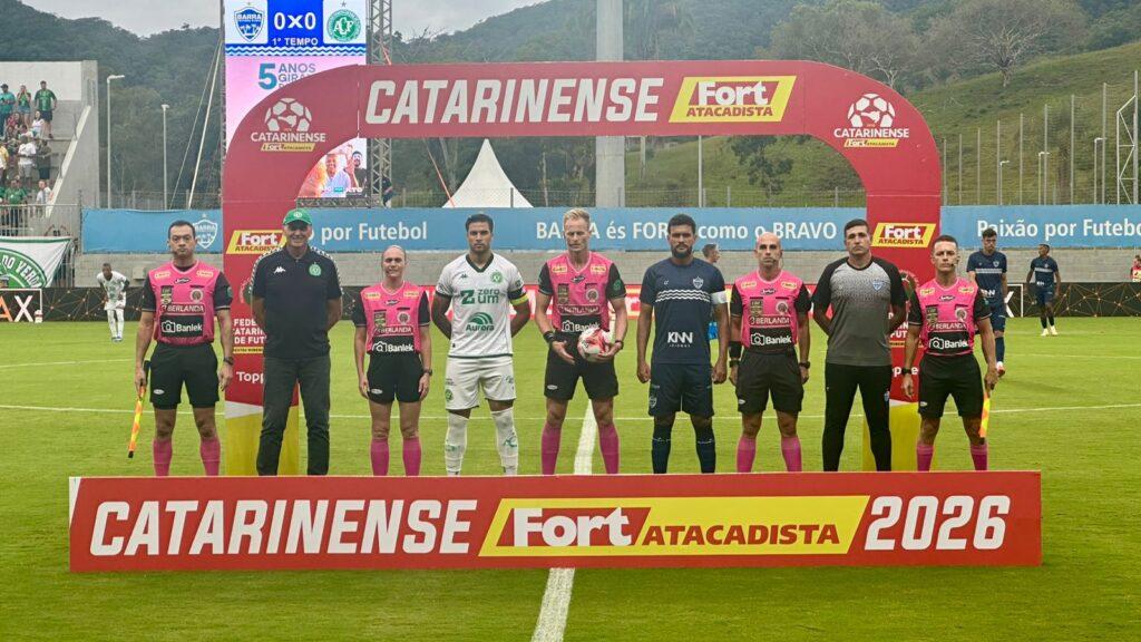 Com a Arena Barra FC, em Itajaí, tomada de torcedores, ocorreu na noite deste domingo (01/03) 0 jogo de ida da decisão do Campeonato Catarinense Fort Atacadista 2026. O Barra FC venceu a Chapecoense pelo placar de 3 a 1. A competição é organizada pela Federação Catarinense de Futebol (FCF).