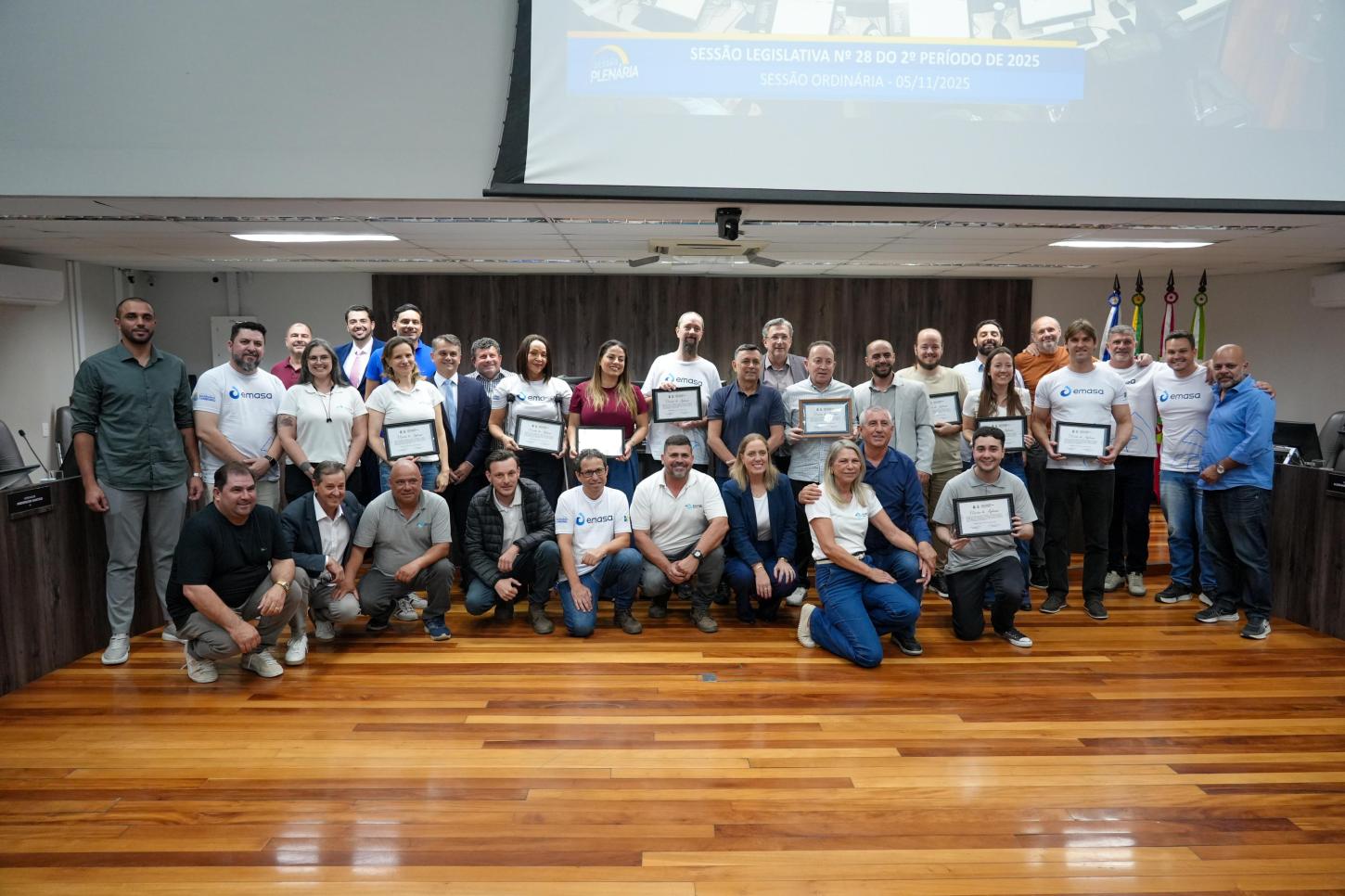 A Moção 476/2025, do vereador Samir Dawud, é de aplauso a todos os servidores da EMASA – Empresa Municipal de Água e Saneamento de Balneário Camboriú, pelos 20 anos de atuação, reconhecendo e valorizando o comprometimento, a dedicação e o trabalho exemplar desempenhado.