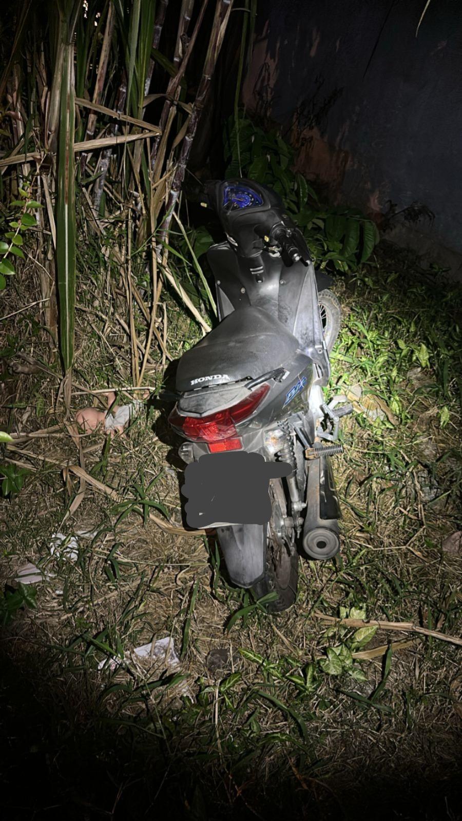 A guarnição foi acionada pela Central Regional de Emergência para atendimento de ocorrência no bairro São Vicente. No local, os policiais militares localizaram uma motocicleta 125 abandonada em meio à vegetação de um terreno baldio, ao final de uma via.