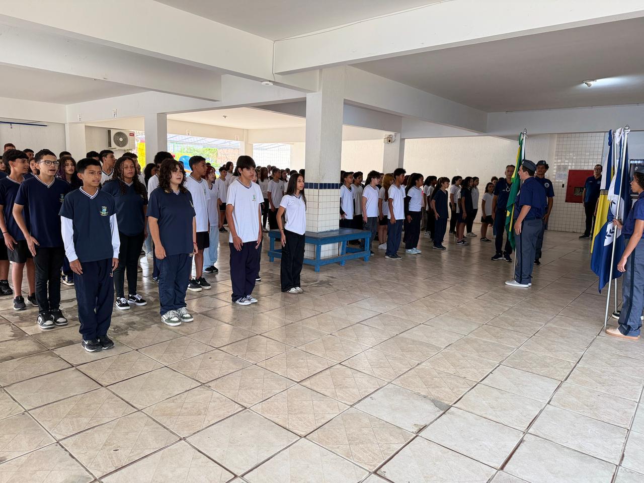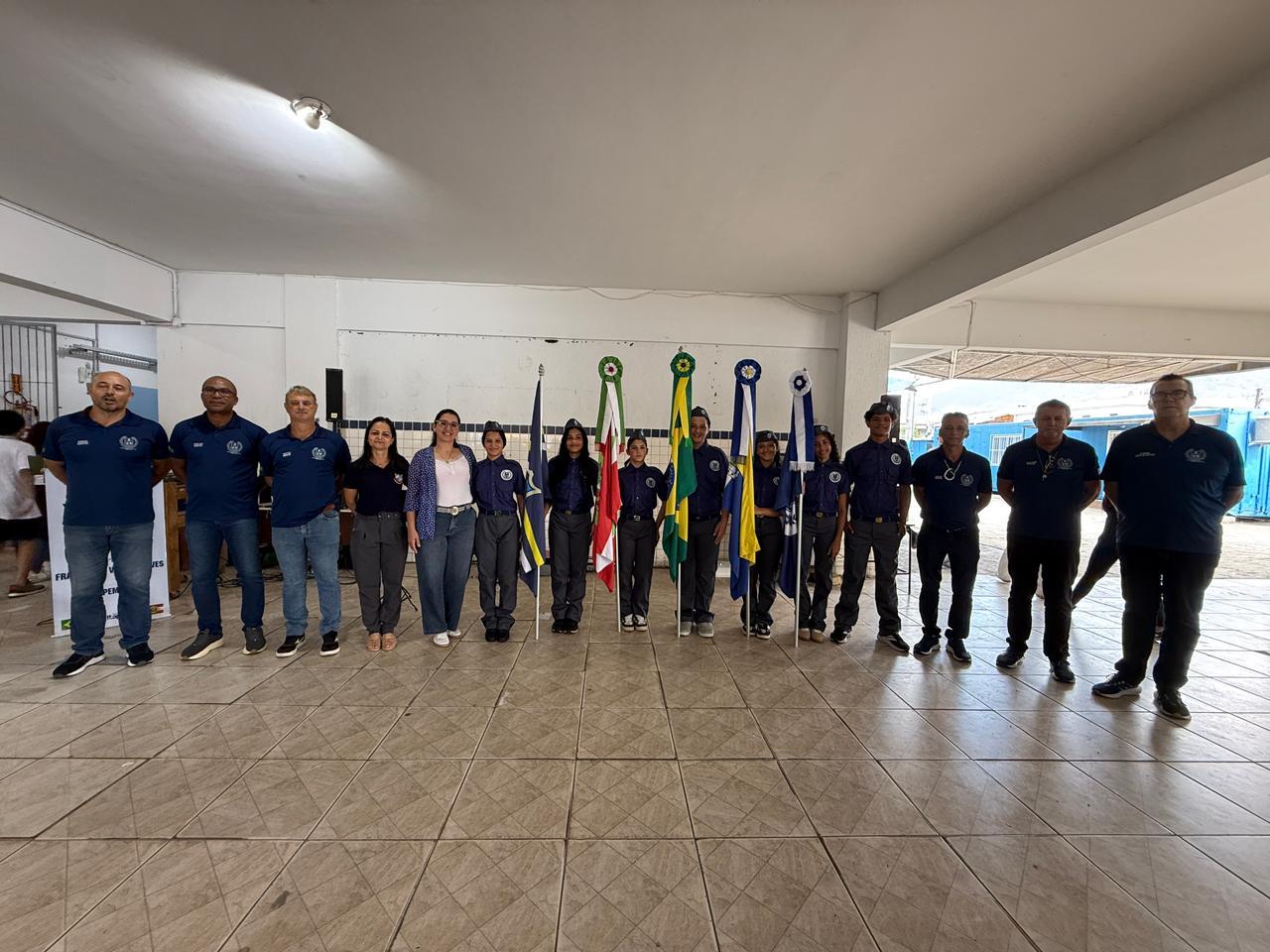 Na EMEB Francisco Victor Alves, os alunos dos 8º e 9º anos participaram da formatura do programa cívico-militar, em uma cerimônia marcada pela homenagem à cidade. O estudante Bernardo Matias de Moura apresentou um texto sobre Itapema, enquanto Yasmin da Silva Almeida, do 7º ano, conduziu a execução dos hinos do Brasil e do município à capela.