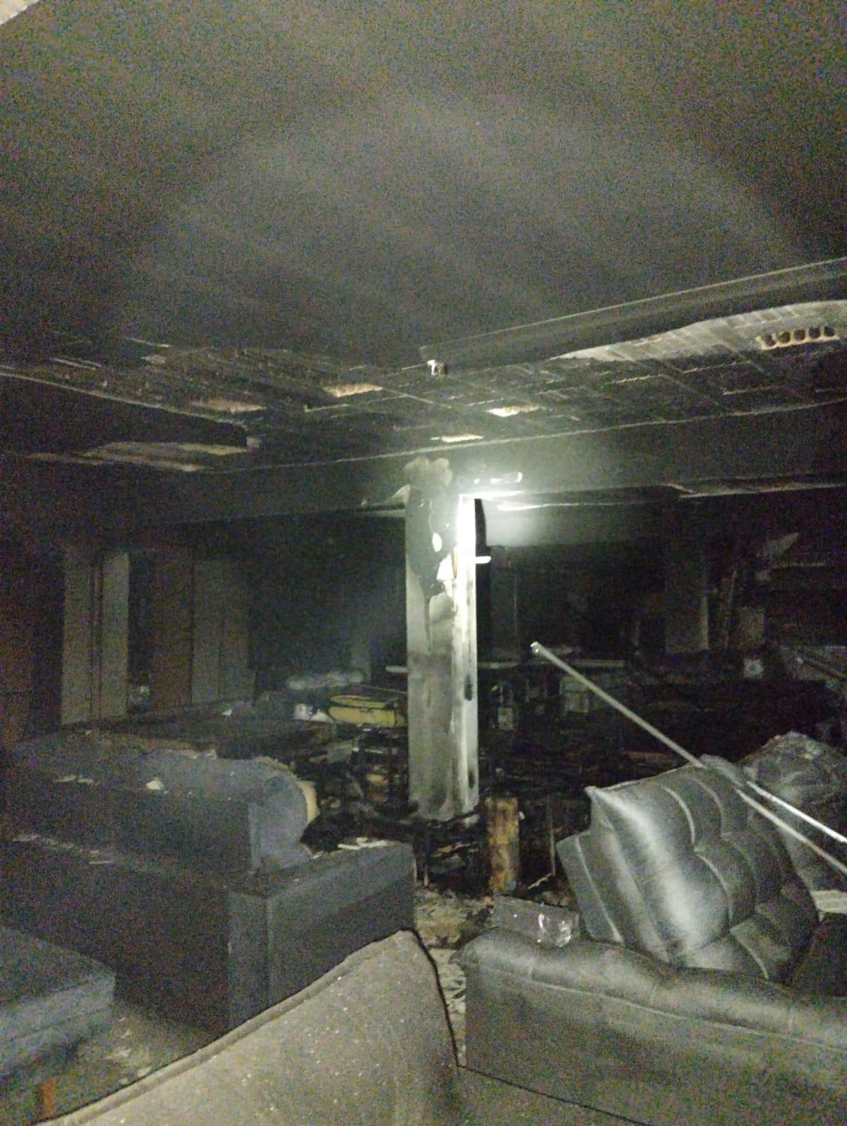 No local, alguns sofás, colchões, racks de madeira, luminárias e ventiladores foram queimados, em uma área de aproximadamente 100m². Foram gastos, aproximadamente, 100 litros de água.