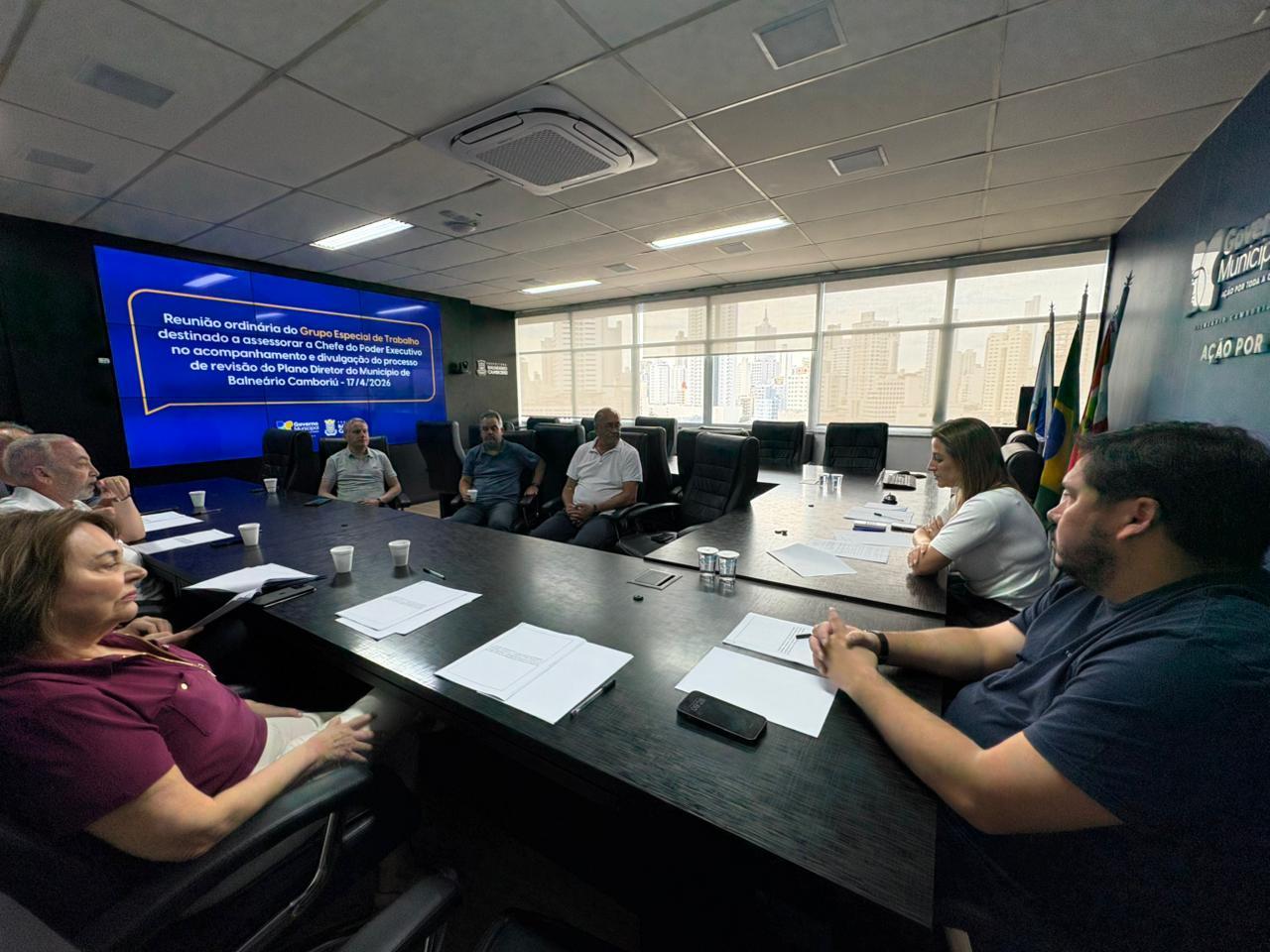 O Grupo Especial de Trabalho destinado a assessorar diretamente a Chefe do Poder Executivo no acompanhamento e divulgação do processo de revisão do Plano Diretor reuniu-se na última semana, a fim de debater emendas já protocoladas no Projeto de Lei Complementar 2/2026, que disciplina o uso e a ocupação do solo, as atividades de urbanização e dispõe sobre o parcelamento do solo no território do Município de Balneário Camboriú.