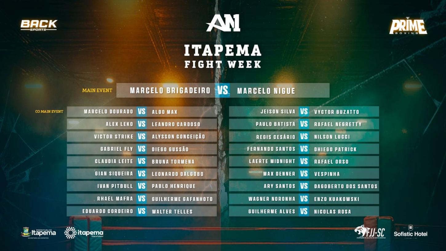 Além do evento principal, a Fight Week segue com programação até domingo (12/10), com o ADCC International Open Itapema, torneio oficial do Abu Dhabi Combat Club, e o Seminário Solidário do Dia das Crianças, com entrada gratuita e arrecadação de alimentos para projetos sociais da cidade.