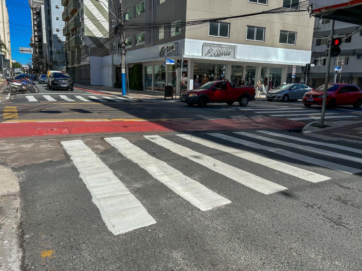 A pintura na sinalização horizontal contempla as faixas de pedestre entre as ruas Miguel Matte, no Bairro Pioneiros, e a 3850, na Barra Sul.
