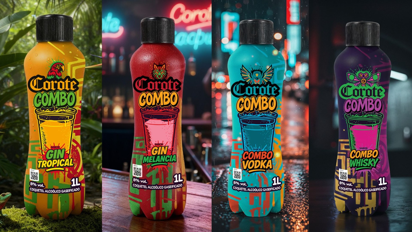 Sobre o Corote Combo - Os coquetéis gaseificados Corote Combo são a mais recente novidade da Corote, marca da Missiato Indústria e Comércio Ltda., que há 67 anos se destaca na produção e comercialização de bebidas alcoólicas no Brasil e no exterior. Com 8% de teor alcoólico, o lançamento chega em embalagem plástica de 1 litro, desenvolvida para oferecer ainda mais praticidade e sabor aos consumidores. Disponível em quatro versões, cada uma com identidade própria, a linha traz: Gin Melancia, Combo Whisky, Combo Vodka, e Gin Tropical.